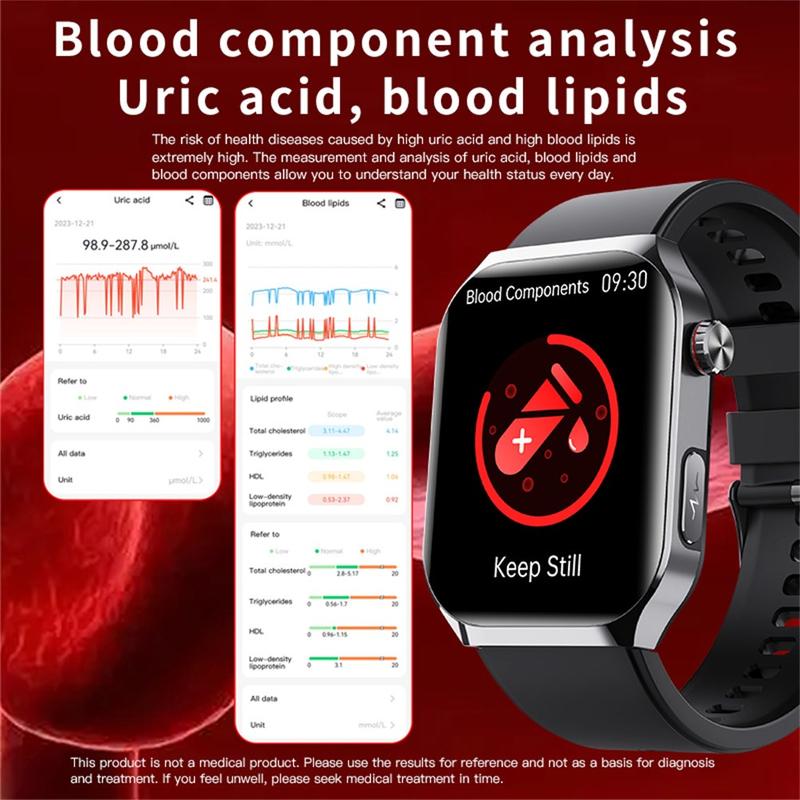 - Umfassende Gesundheitsüberwachung - EKG, HRV-Bericht, Körperzusammensetzung, Rotlicht-Blutsauerstoff und nicht-invasive Blutzuckermessung.