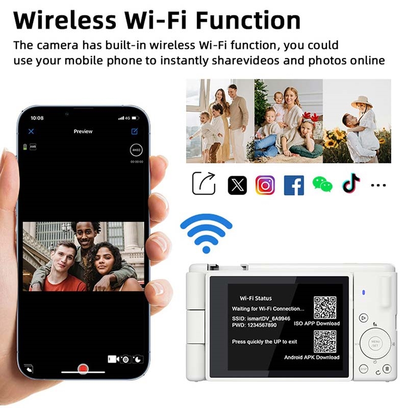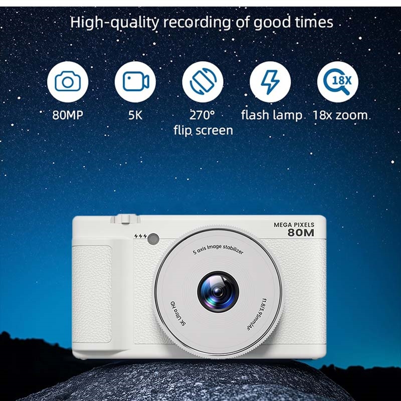 • FC003W Digitalkamera mit 2,8" IPS-Flip-Display - 5K-Videoaufnahmen, 80MP-Fotos und WiFi-Konnektivität