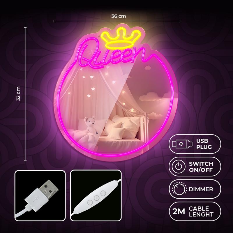 Verschönern Sie Ihr Interieur mit dem Neon MIRROR LED, einer perfekten Mischung aus Umgebungsbeleuchtung und einem praktischen Spiegel, der von einem stilvollen Neonrahmen umgeben ist. Die LED-Beleuchtung schafft eine gemütliche und entspannende Atmosphäre und eignet sich daher sowohl für die Dekoration als auch für den täglichen Gebrauch. Dank seiner vielseitigen Einsatzmöglichkeiten ist er sowohl in Dienstleistungssalons als auch in Wohnräumen ein Blickfang.