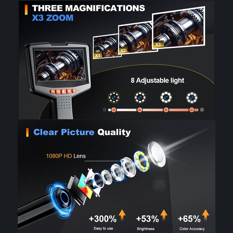 Ausgestattet mit einer Kamera mit 8 mm Durchmesser und 8 einstellbaren LED-Beleuchtungen sorgt dieses Endoskop für hervorragende Sicht in dunklen, engen oder komplexen Umgebungen. Ideal für mechanische Inspektionen, Klempnerarbeiten, Autodiagnose und Hauswartung.
