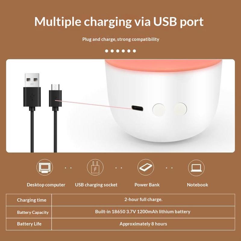 Dank des integrierten 1200-mAh-Akkus kann die Lampe kabellos verwendet und überall aufgestellt werden - ideal für Nachttische, Schreibtische, Regale oder Abende im Freien. Bei voller Ladung bietet sie bis zu 8 Stunden Betriebsdauer.