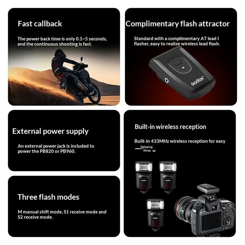 Der GODOX TT560 II verfügt über einen integrierten 433-MHz-Funkempfänger, der die Auslösung von ein bis drei externen Blitzgeräten mit 16 verfügbaren Kanälen und einer Reichweite von bis zu 15 m ermöglicht. Dies macht ihn nützlich für Porträtaufnahmen, Produktfotografie, kreative Innenbeleuchtung und andere Szenarien, in denen eine flexiblere Platzierung des Blitzes erforderlich ist. Es werden drei Blitzmodi unterstützt: Manuell (M), optischer Slave (S1) und Vorblitz-Ignorieren (S2), was Ihnen mehr Optionen für unterschiedliche Lichtverhältnisse und Aufnahmestile bietet.