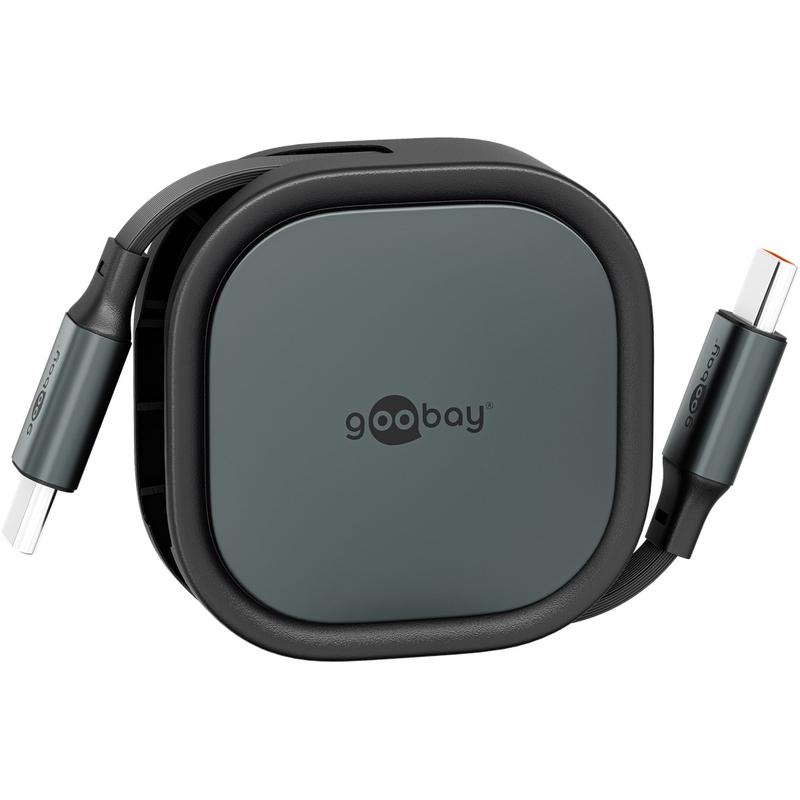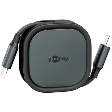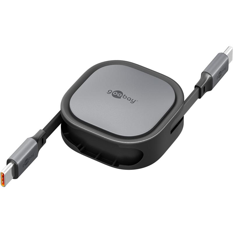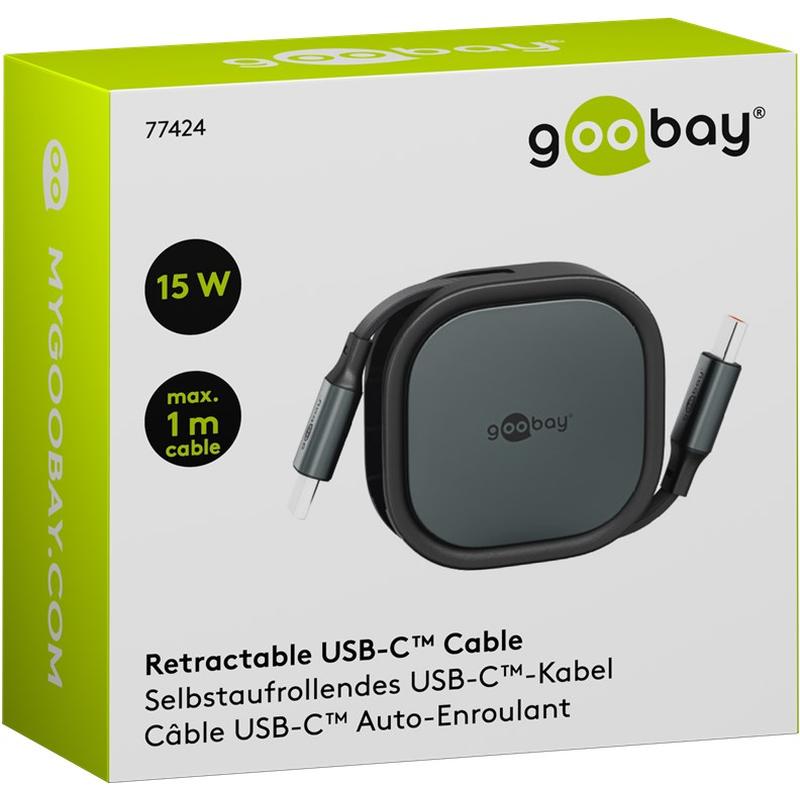 Goobay Einziehbares USB-C-Kabel - 1m flaches Ladekabel mit 15W Leistung und Auto-Retract-Mechanismus