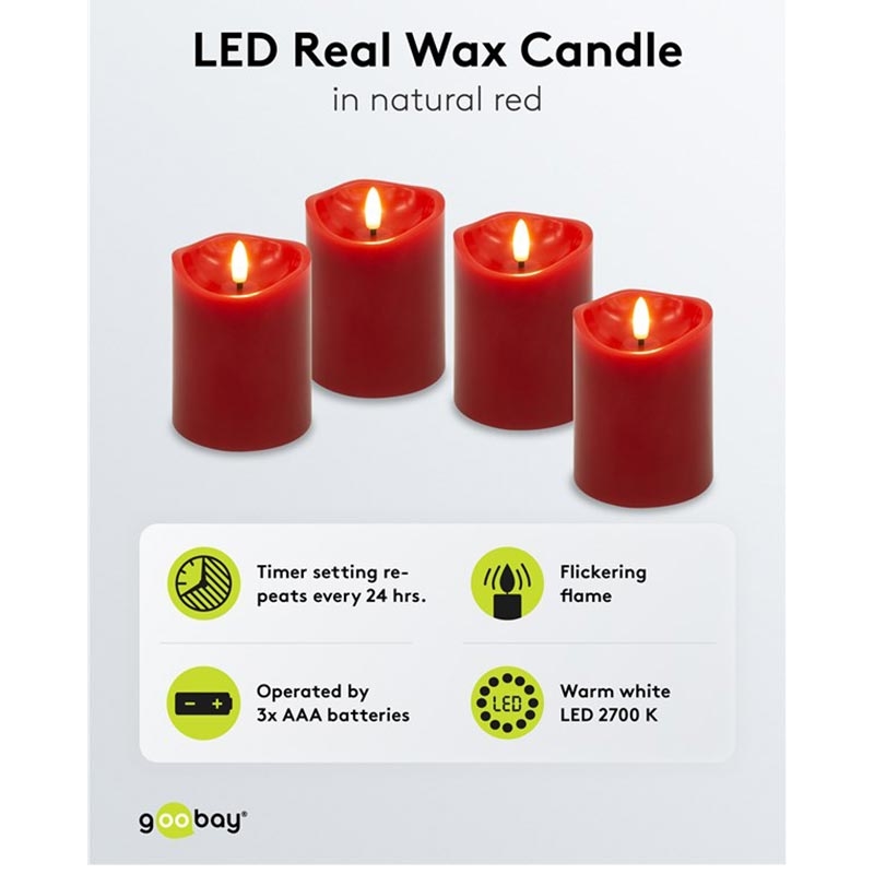 Goobay LED-Echtwachskerzen mit 3D-Docht & Timer-Funktion - 4 Stk. - Rot
