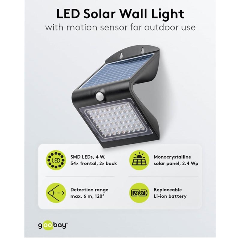 Goobay LED-Solar-Wandleuchte 4W mit PIR-Bewegungssensor - IP65 wasserdichte Solarlampe für den Außenbereich (500 lm, 4000K) - austauschbare Batterie