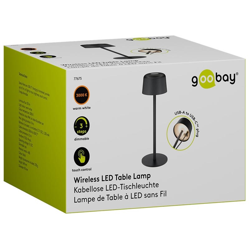 Goobay Wireless LED-Tischlampe - Größe S (25 cm), Touch-Steuerung, Warmweiß 3000 K, 150 lm, USB-C-aufladbar, IP44