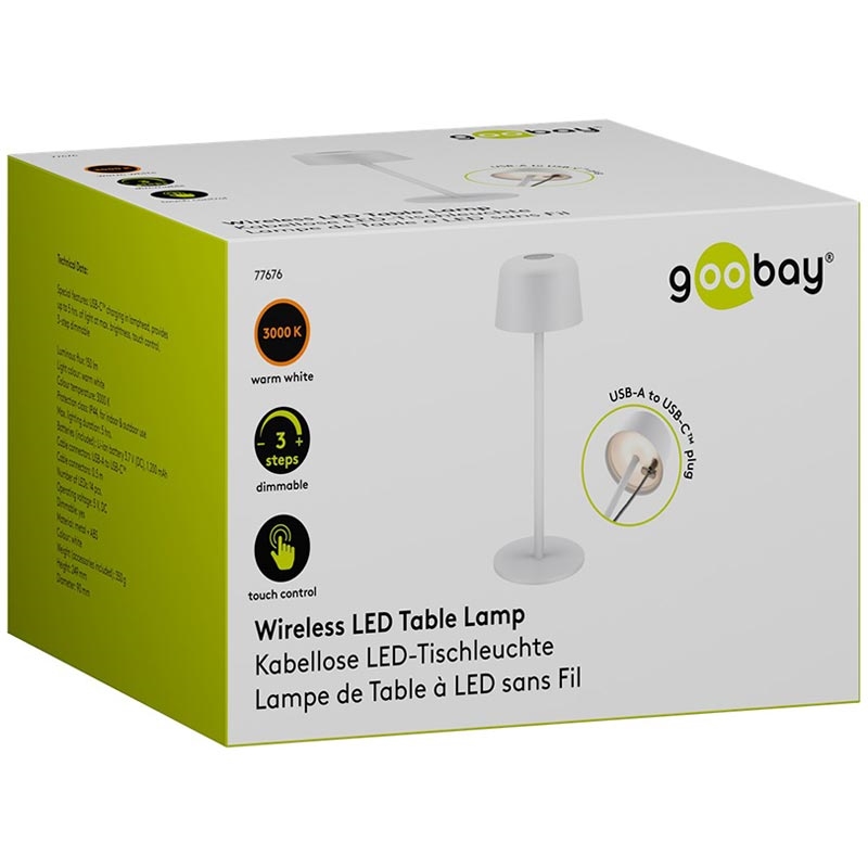 Goobay Wireless LED-Tischlampe - Größe S (25 cm), Touch-Steuerung, Warmweiß 3000 K, 150 lm, USB-C-aufladbar, IP44