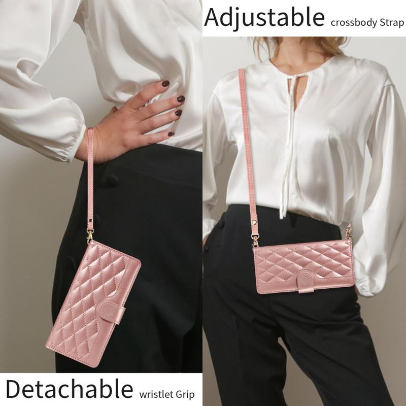 Luxus Gesteppte Wallet Hülle mit Schulter & Handgelenk Strap für Google Pixel 10a - Rhombus-Muster Schutzhülle