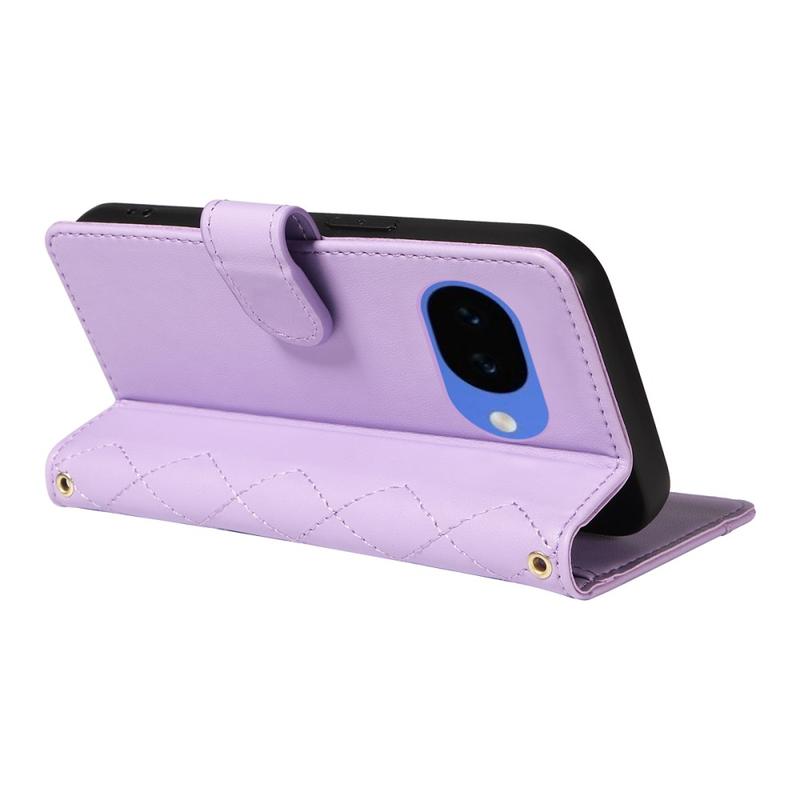Luxus Gesteppte Wallet Hülle mit Schulter & Handgelenk Strap für Google Pixel 10a - Rhombus-Muster Schutzhülle