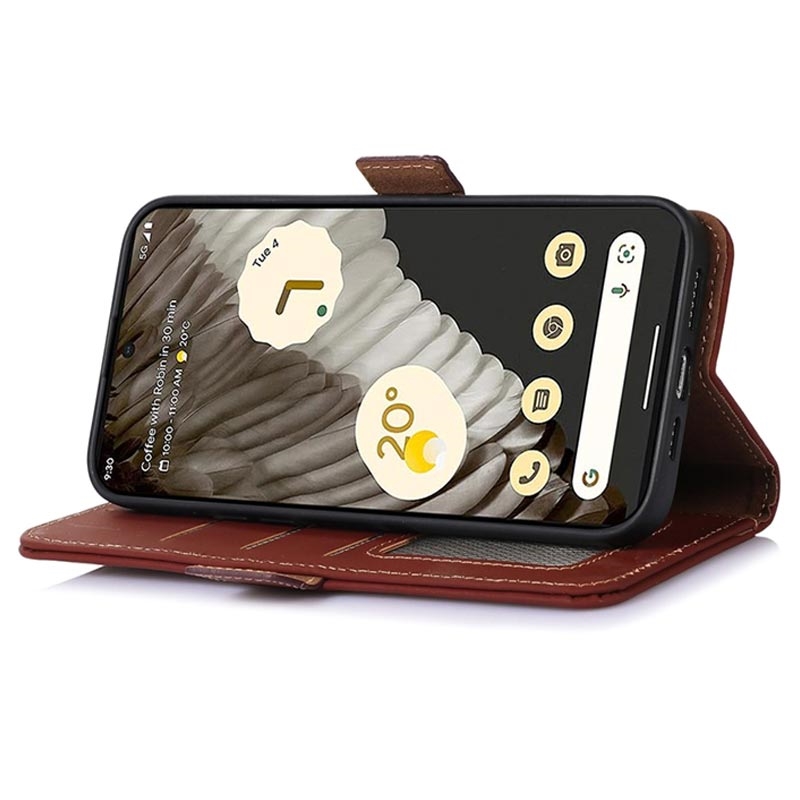 - Hochwertige Wallet-Hülle aus echtem Leder für Google Pixel 7a