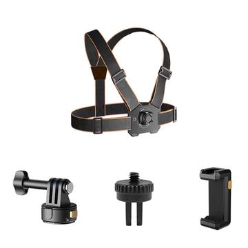 GP-032 Actionkamera-Brustgurt-Set - Magnetische Schnellwechselhalterung, 1/4"-Miniadapter und Handyclip für POV-Aufnahmen