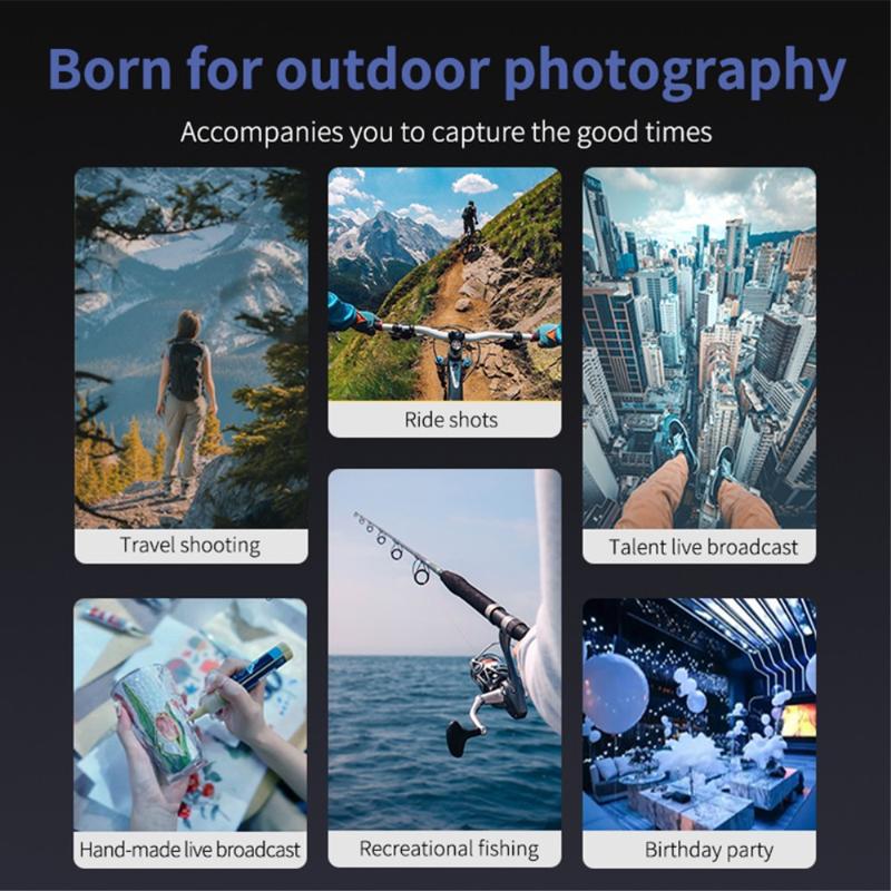 Universell geeignet für Actionkameras (GoPro-Style-Halterungen) und Smartphones mit dem mitgelieferten Telefonclip und 1/4"-Mini-Adapter.
