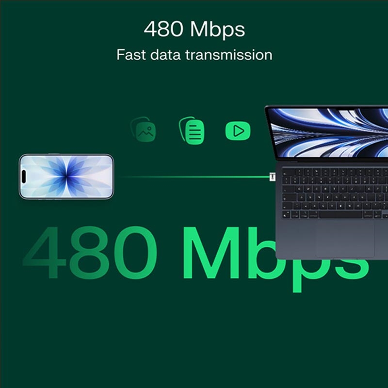 - Schnelle Datenübertragung - Unterstützt eine Übertragungsgeschwindigkeit von 480 Mbit/s und ermöglicht so schnelle und effiziente Dateiübertragungen zwischen Geräten wie Smartphones, Tablets und Laptops.