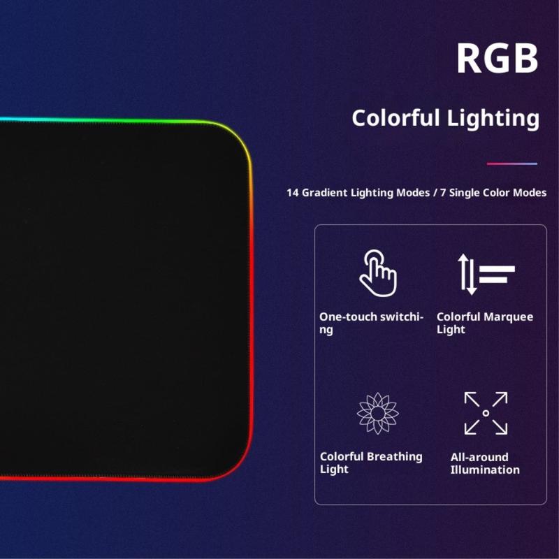 Die Matte verfügt über eine lebendige RGB-Beleuchtung mit Farbwechsel und verleiht Ihrem Setup eine beeindruckende visuelle Note. Mehrere Beleuchtungsmodi verbessern die Ästhetik Ihres Desktops und schaffen die perfekte Spielatmosphäre.