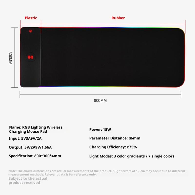 Großes Anti-Rutsch-RGB-Tastatur/Mauspad mit 15W Wireless Charger, LED-Beleuchtung - 800×300×4mm