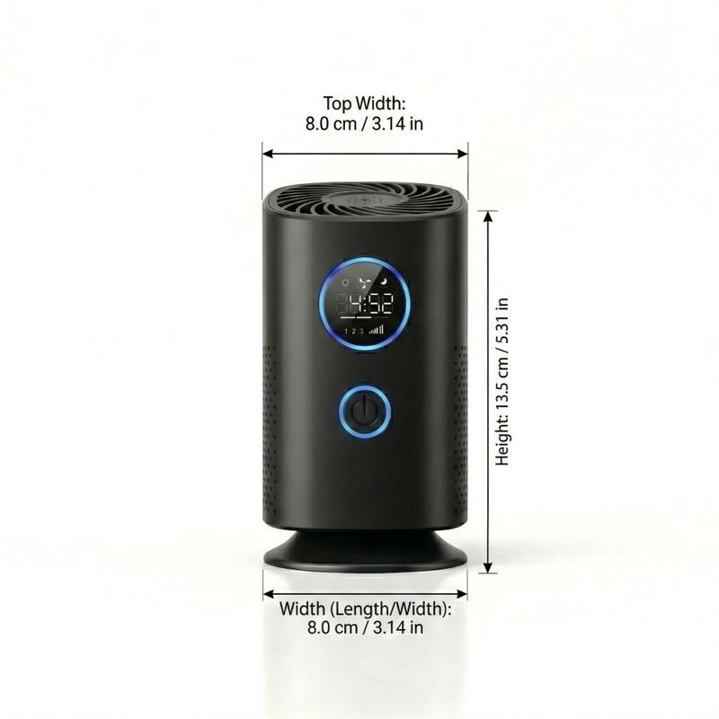 - Die kompakte Größe von 8,0 x 8,0 x 13,5 cm passt problemlos auf Schreibtische, Regale, Nachttische und in den Innenraum von Autos.
