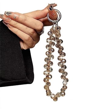 14cm lange Handy-Kette mit Kristallperlen - Handgelenkband mit Schlüsselanhänger und durchsichtiger Befestigungslasche