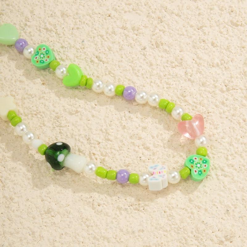 20cm langes Handy-Band mit Pilz- und Perlenperlen - Handy-Accessoire mit Acryl-Handschlaufe