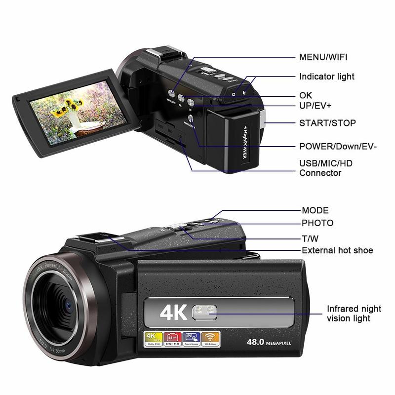 HDV-254KM 4K-Digitalvideokamera - 48MP Ultra HD Camcorder mit 3.0" Touchscreen, 16X Zoom, IR-Nachtsicht und WiFi