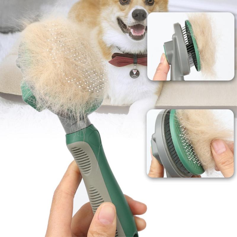 - Selbstreinigungsknopf: Entfernt mühelos angesammelte Haare aus dem Kamm und sorgt so für eine effiziente und hygienische Fellpflege.