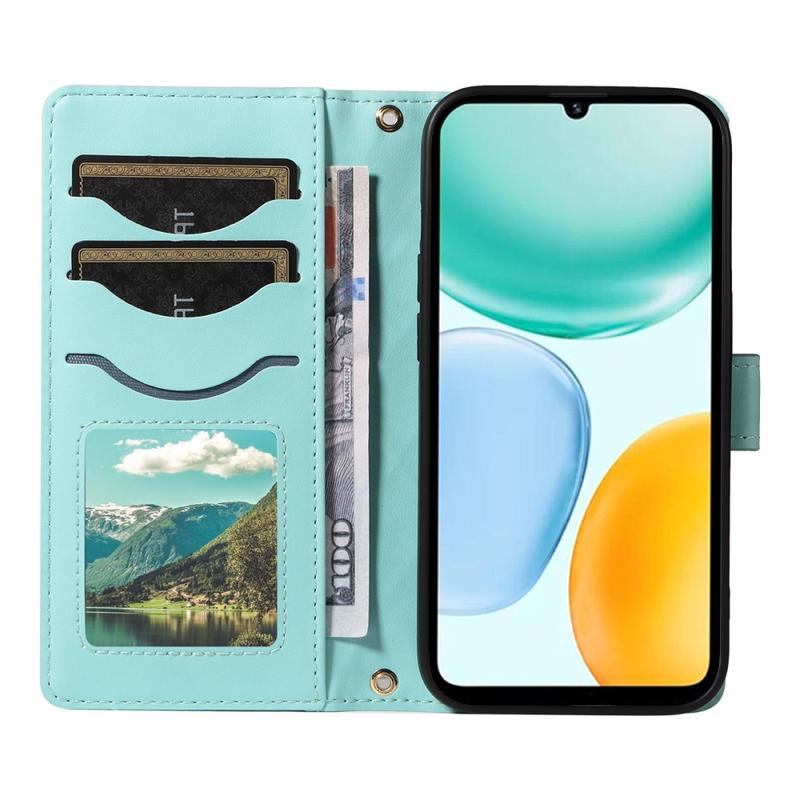 Luxus Gesteppte Wallet Hülle mit Schulter & Handgelenk Strap für Honor X5c Plus - Rhombus-Muster Schutzhülle