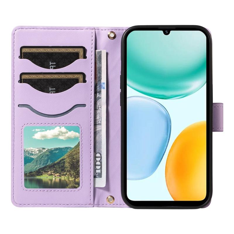 Luxus Gesteppte Wallet Hülle mit Schulter & Handgelenk Strap für Honor X5c Plus - Rhombus-Muster Schutzhülle