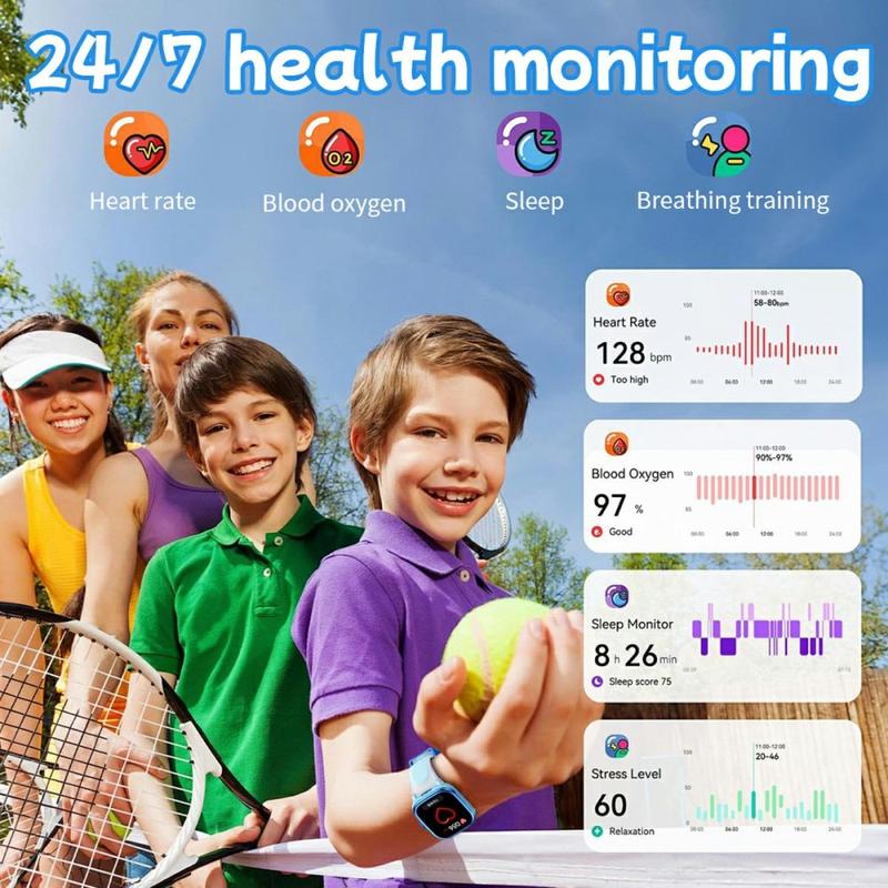 HT40 Kinder-Smartwatch mit Herzfrequenzmessung, Schlafüberwachung, Story Player und Taschenlampe - IP68, eigenständige Nutzung
