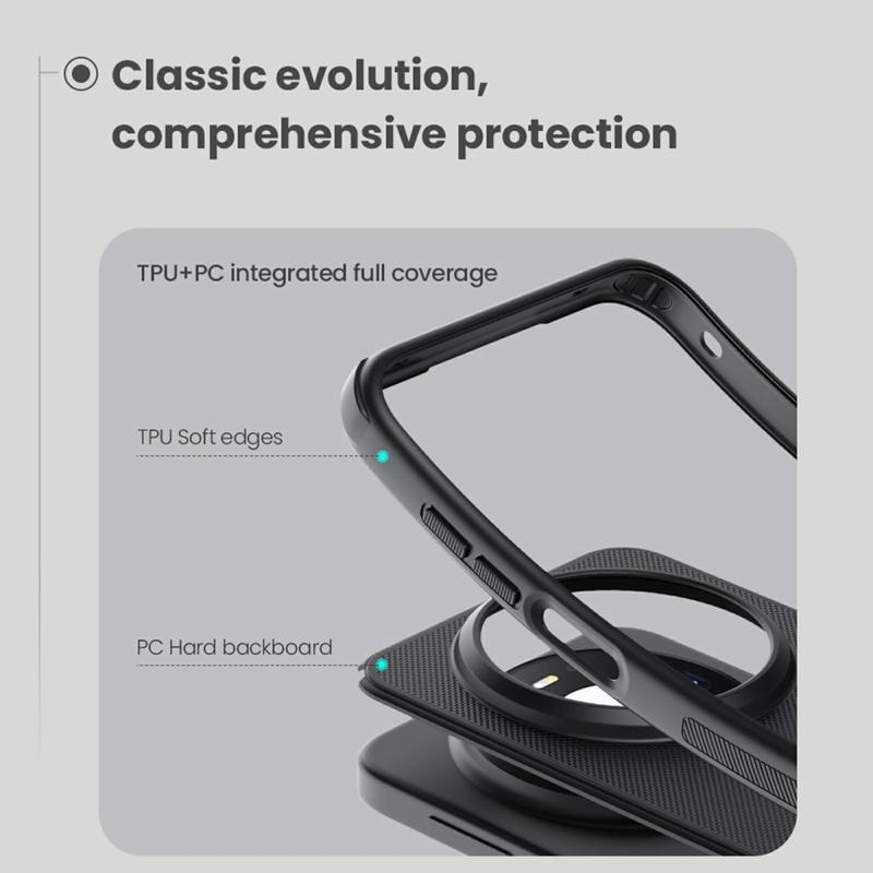 Die Nillkin Frosted Shield Pro Magnetic Hybridhülle bietet ein angenehmes Tragegefühl und starken Schutz vor täglicher Abnutzung. Dank der Kombination aus umweltfreundlichem PC und flexiblem TPU ist Ihr Huawei Mate 80 Pro Max bestens geschützt. Die Hybridhülle Nillkin Frosted Shield Pro Magnetic enthält außerdem einen integrierten Magnetring, der mit kabellosem Laden kompatibel ist, sodass Sie Ihr Huawei Mate 80 Pro Max von nun an mit der Hülle aufladen können.