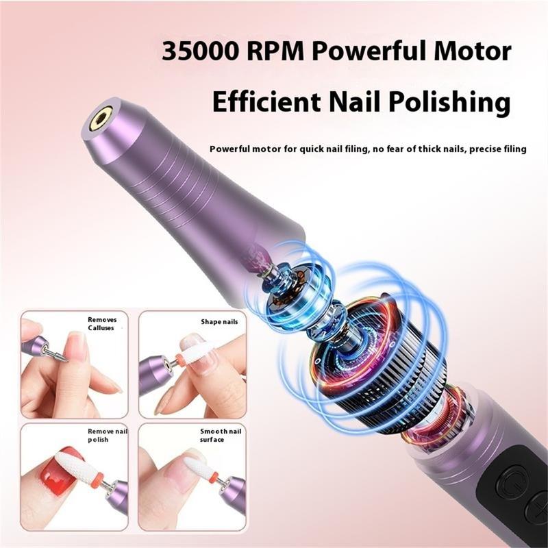 HX-09 Elektrische Nagelfeile - 4-stufige, wiederaufladbare USB-Nagelschleifmaschine für Haus und Salon