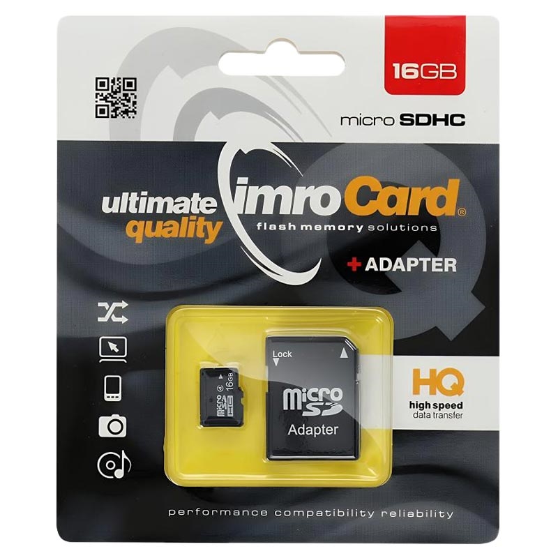 Imro microSDHC-Speicherkarte 16GB mit SD-Adapter - Klasse 4, bis zu 85 MB/s Lesegeschwindigkeit
