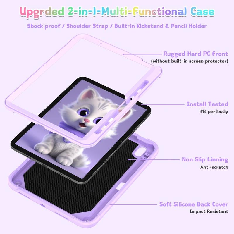 Niedliche Katzen-Hybridhülle mit Kickstand, Schulterriemen und Stylus-Halterung für iPad Air 11 (2024), iPad Air 11 (2025)
