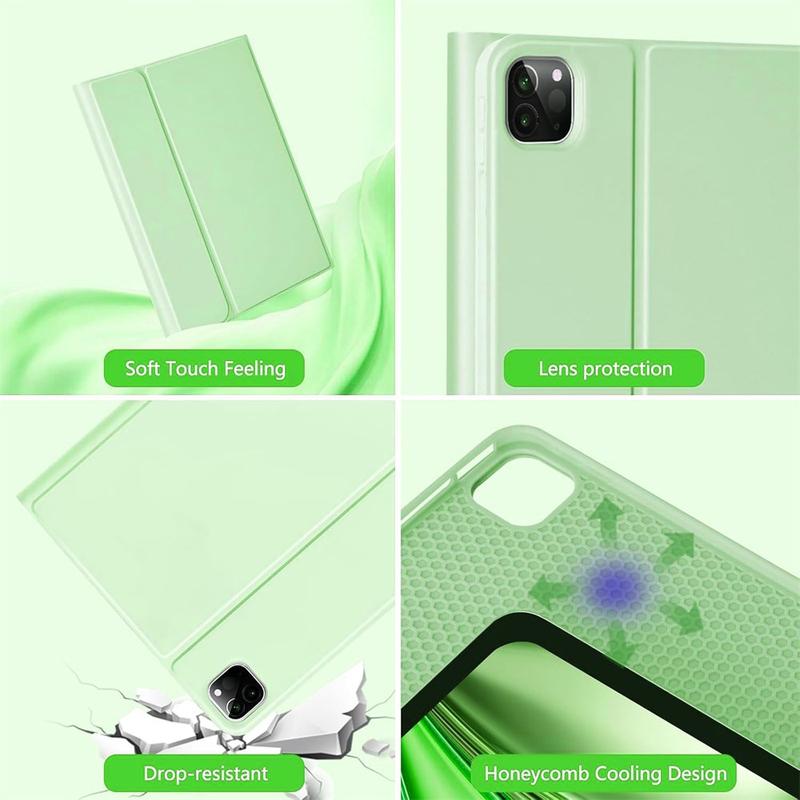 Erweitern Sie Ihr iPad Air 13 2026/2025/2024, iPad Pro 12.9 2022/2021/2020/2018 mit der Bluetooth-Tastaturhülle, einem multifunktionalen 2-in-1-Zubehör, das Schutz, Produktivität und Stil vereint. Diese elegante Hülle aus hochwertigem Polyurethan bietet umfassenden Schutz vor Kratzern, Stößen und Fingerabdrücken und sieht dabei auch noch professionell aus. Die Bluetooth-Tastatur lässt sich kabellos verbinden und ermöglicht ein flüssiges, reaktionsschnelles Tippen, während das integrierte Touchpad eine Multi-Gesten-Steuerung für müheloses Navigieren unterstützt. Dank der beleuchteten Tastatur können Sie auch in schwach beleuchteten Umgebungen bequem tippen. Der integrierte, verstellbare Ständer bietet einen ergonomischen Betrachtungswinkel und eignet sich somit perfekt zum Tippen, Streamen oder Lesen. Diese Tastaturtasche wurde für den Geschäfts-, Reise- oder Alltagsgebrauch entwickelt und verwandelt Ihr Tablet in eine tragbare Workstation.