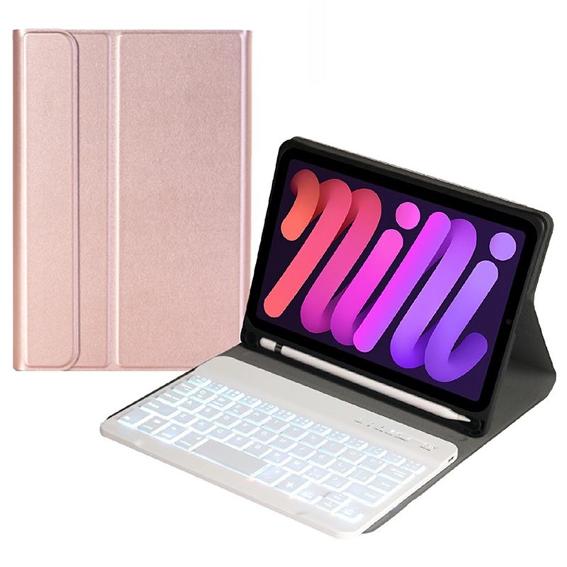 iPad Mini (2021), iPad Mini (2024) Bluetooth Tastaturhülle mit Hintergrundbeleuchtung, Touchpad und Ständer - US-Tastaturlayout
