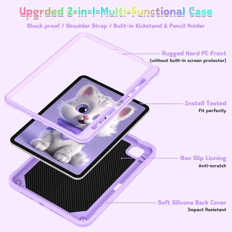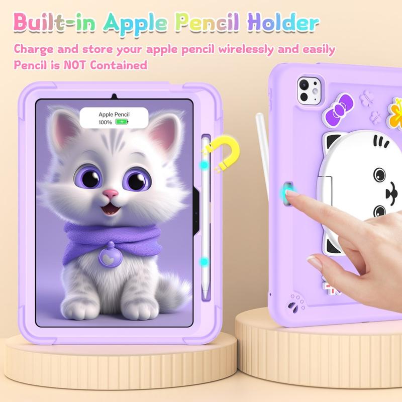 Niedliche Katzen-Hybridhülle mit Kickstand, Schulterriemen und Stylus-Halterung für iPad Pro 11 (2024), iPad Pro 11 (2025)