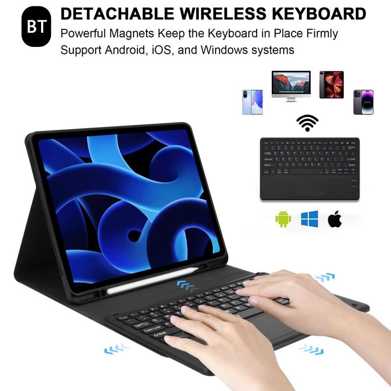 Diese Bluetooth-Tastaturhülle verwandelt Ihr iPad Pro 12.9 2018/2020/2021/2022 in wenigen Sekunden in einen tragbaren Laptop. Sie können die Bluetooth-Tastatur getrennt von der Hülle verwenden. Eine perfekte Wahl, um das Benutzererlebnis zu verbessern und Ihr iPad Pro 12.9 2018/2020/2021/2022 in einwandfreiem Zustand zu erhalten, ohne dabei Schaden zu nehmen.