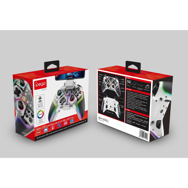• iPega PG-9666HH Drahtloser RGB-Gamecontroller - Hall-Effekt-Sticks und -Trigger, Turbo, programmierbare Tasten, doppelte Vibration - für Android/iOS (MFi)/PS3/PS4/PC/Switch