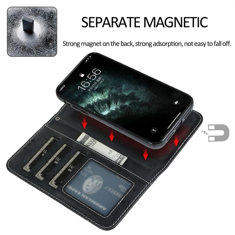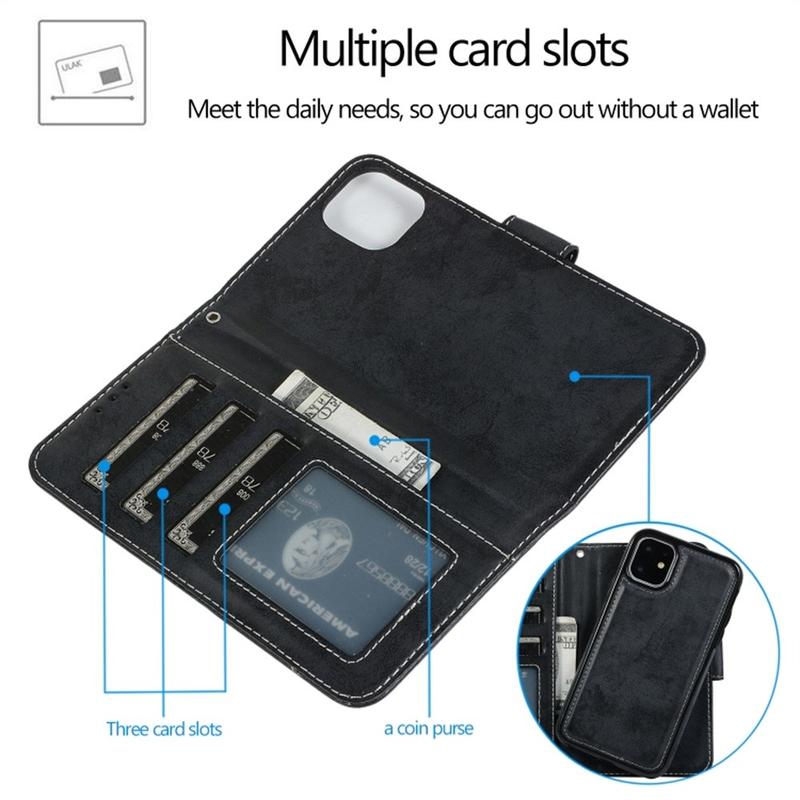 Vintage 2-in-1-Geldbörsenhülle mit abnehmbarer Magnetabdeckung für das iPhone 11