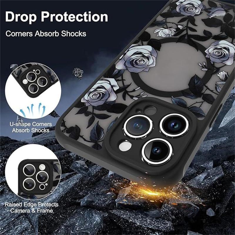 Das Rose Flower MagSafe Case für das iPhone 12 Pro Max bietet eine perfekte Verschmelzung von Vintage-Charme und moderner Innovation. Mit seiner robusten Hybrid-Konstruktion, Anti-Fingerprint-Oberfläche und voller MagSafe-Kompatibilität schützt es dein Telefon und hält es gleichzeitig stilvoll, schlank und funktional.