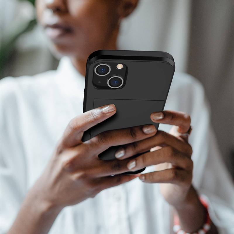 - Einzigartige Hybridhülle mit verschiebbarem Kartensteckplatz für das iPhone 14