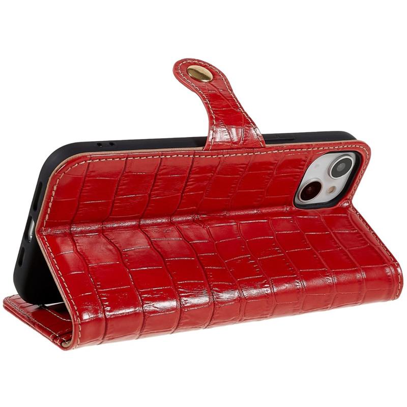 Für iPhone 14 Plus, echtes Rindsleder, Anti-Drop-Telefonhülle, Krokodilleder-Textur, Ständer, voller Schutz, Flip Wallet Cover