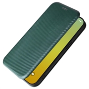 Verbessern Sie den Look Ihres iPhone 15 mit dieser hochwertigen Flip-Tasche mit Carbonfaser-Struktur. Das Flip Case schützt dein Handy vor Kratzern und täglichen Beschädigungen. Die Hülle enthält ein Kartenfach für Ihren Ausweis oder eine häufig verwendete Kreditkarte. Sie verfügt über einen Ringhalter, der als Ständer verwendet werden kann, um Medien freihändig zu betrachten.