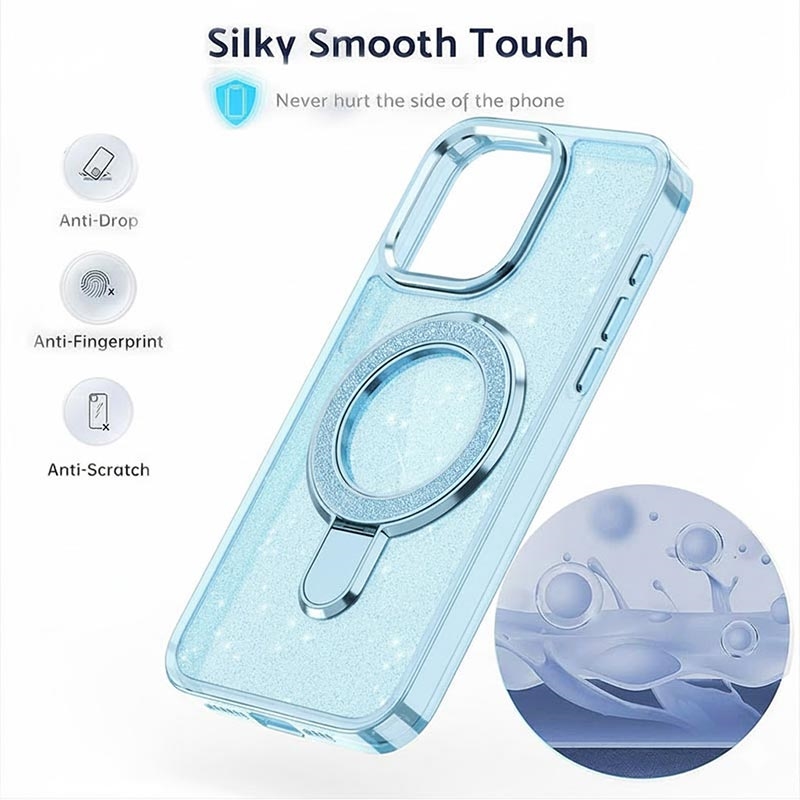 Glitter Hülle mit Kickstand für iPhone 15 - MagSafe kompatible TPU + PC Hybrid Kickstand Cover