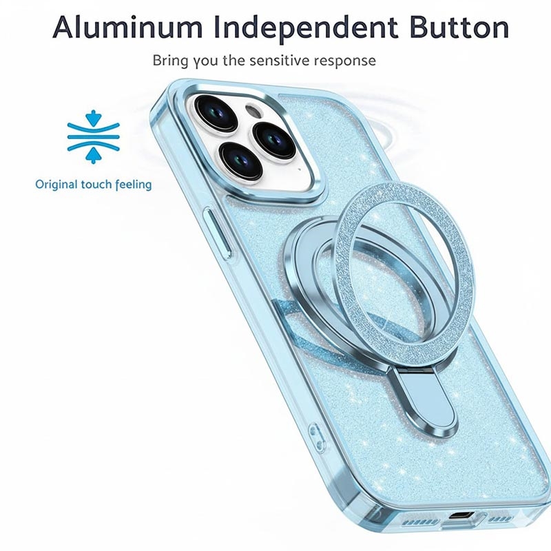 Glitter Hülle mit Kickstand für iPhone 15 Pro Max - MagSafe kompatible TPU + PC Hybrid Kickstand Cover