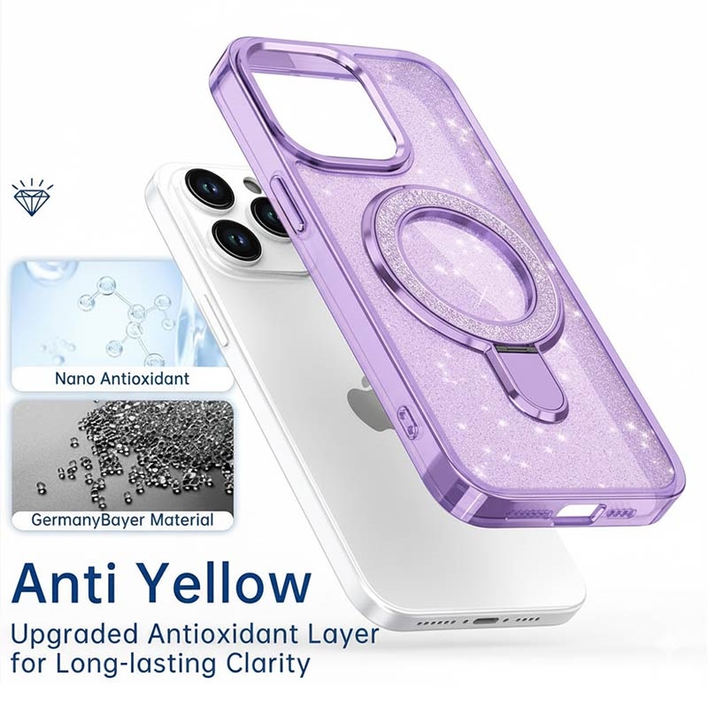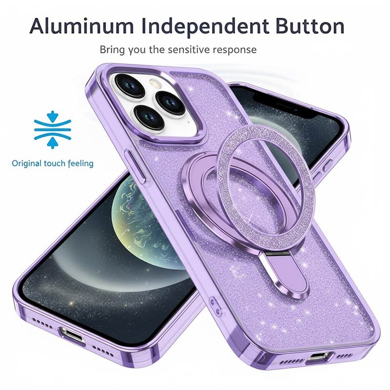 - Glitzerdesign - Die glitzernde Oberfläche der Hülle und des Ringständers verleihen Ihrem Handy einen einzigartigen, auffälligen Look.