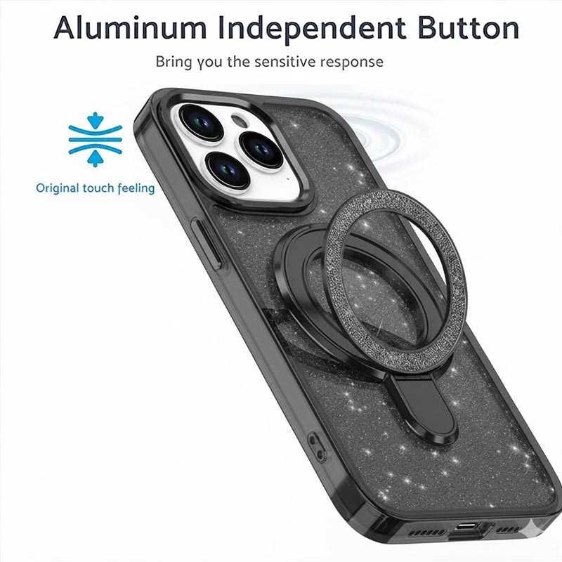 Glitter Hülle mit Kickstand für iPhone 15 Pro Max - MagSafe kompatible TPU + PC Hybrid Kickstand Cover
