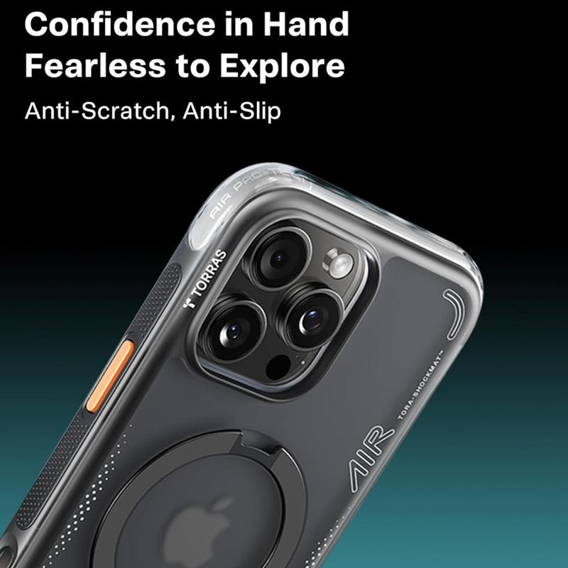 Das Torras Ostand Q3 Air MagSafe Case für das iPhone 15 Pro Max kombiniert moderne Ästhetik mit fortschrittlichem Schutz. Gefertigt aus hochwertigen TPU- und PC-Materialien, bietet es ein schlankes, elegantes Profil und gleichzeitig einen sicheren und komfortablen Halt.
