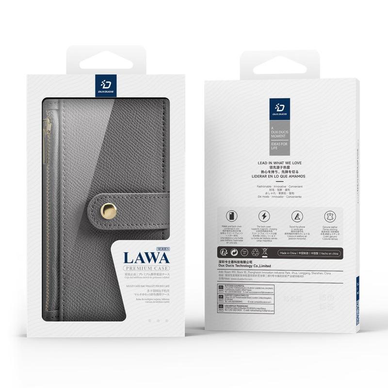 Werten Sie Ihr iPhone 16 mit dem Dux Ducis Lawa Series Magnetic Case auf, einem hochwertigen Accessoire, das Stil und Funktionalität vereint. Dieses schwarze Etui aus echtem Rindsleder verfügt über eine abnehmbare Reißverschlusstasche, in der Sie Ihre wichtigsten Utensilien sicher aufbewahren können. Das magnetische Design ermöglicht ein einfaches Anbringen und Abnehmen und bietet Flexibilität für den täglichen Gebrauch. Mit ihrer schlanken und robusten Konstruktion bietet diese Tasche umfassenden Schutz für Ihr Gerät und sieht dabei auch noch gut aus.