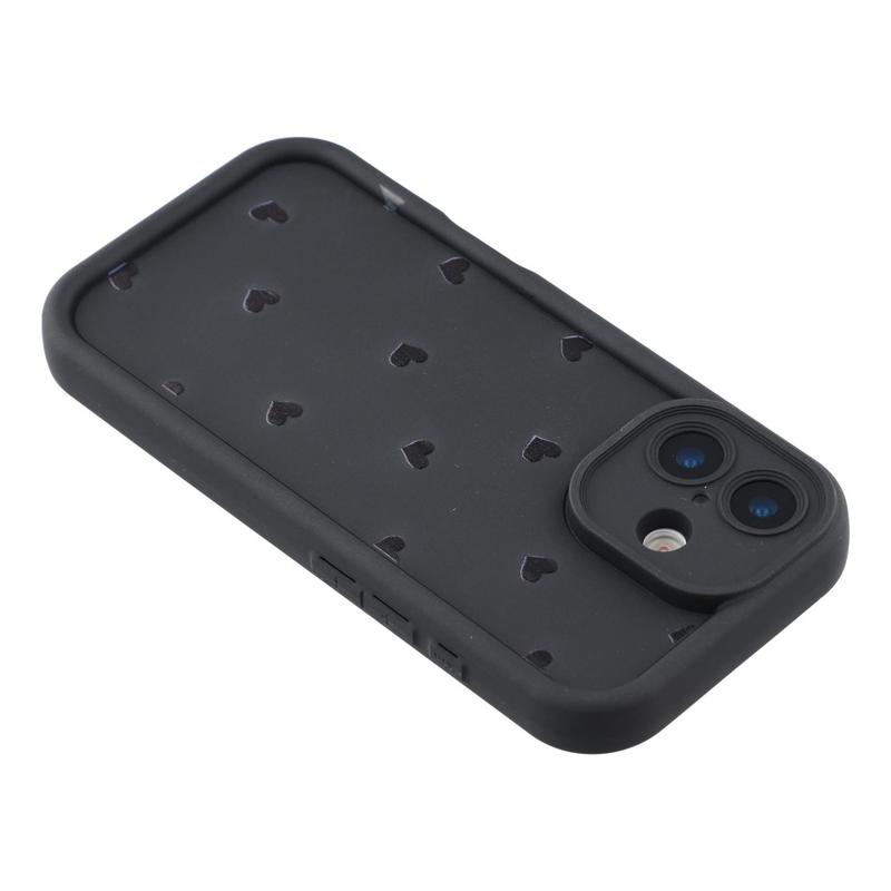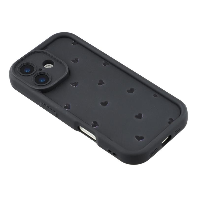 iPhone 16 Herz-Muster stoßfest TPU Hülle mit erhöhten Kanten - schwarz