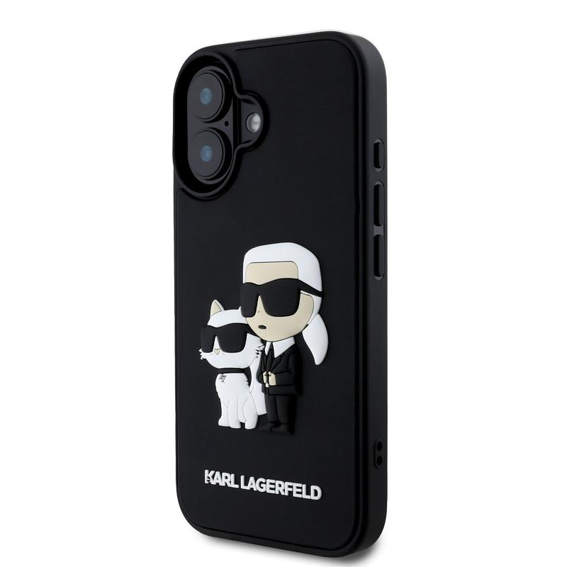 Karl Lagerfeld 3D Rubber Karl & Choupette NFT Hülle für iPhone 16 - Schwarz