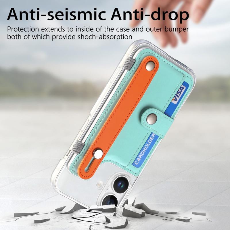 Dieses Etui kombiniert Funktionalität, Stil und Schutz und bietet den Komfort eines Kartenhalters, eines Ständers und eines Armbands in einem. Es ist eine ausgezeichnete Wahl für alle, die eine vielseitige, multifunktionale iPhone 16 Plus Tasche suchen.